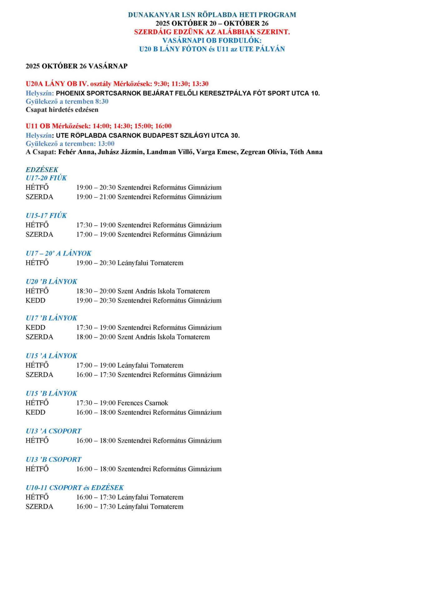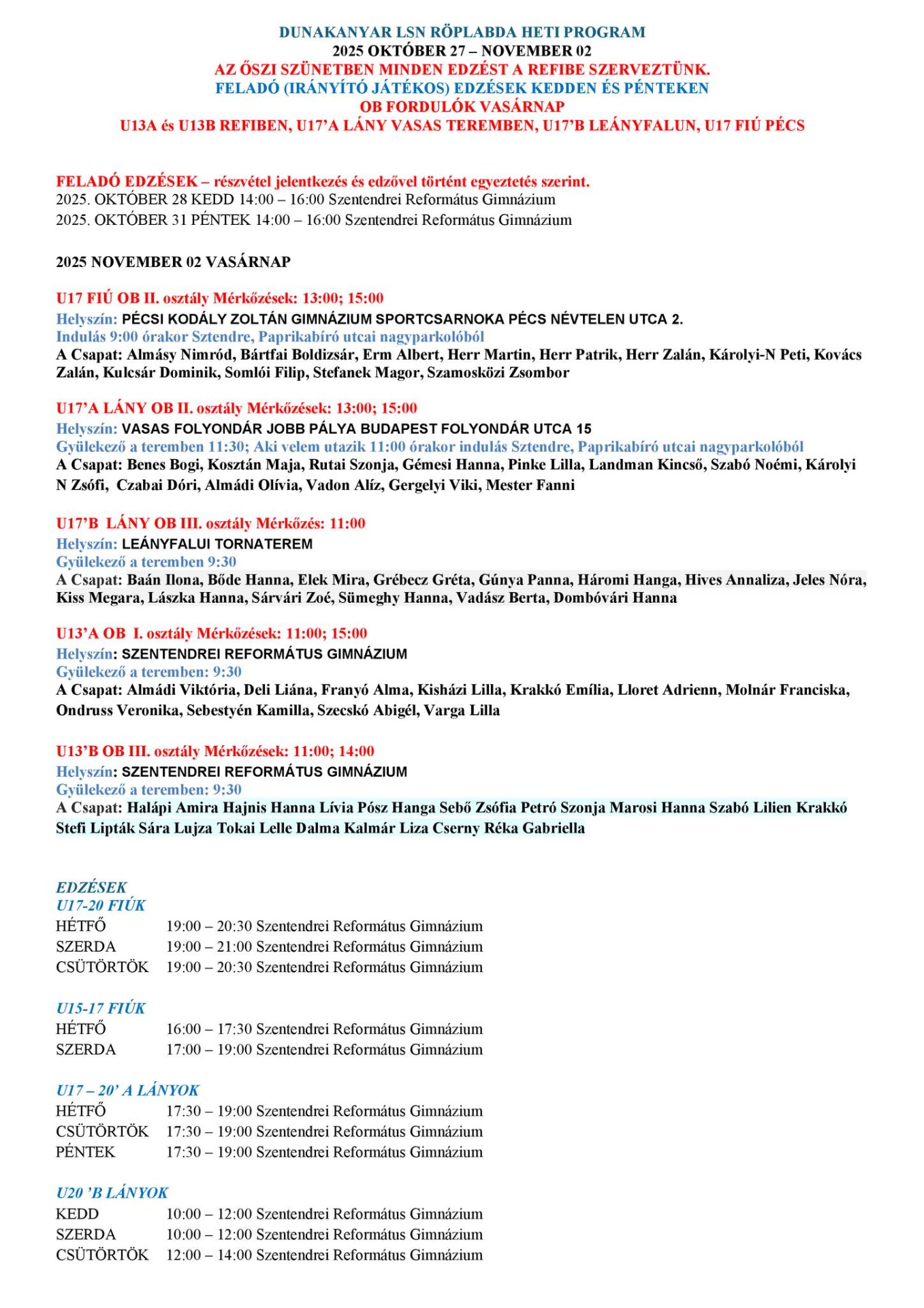 Az ünnepre és az őszi szünetre való tekintettel ezúttal 14 napos programmal jelentkezünk. Az első héten csak szerdáig tartunk edzéseket, majd vasárnap Ob-fordulókkal zárjuk az etapot, míg a második héten minden edzést a Refibe szerveztünk, szintén vasárnapi Ob-fordulókkal. Részletek az alábbi összesítésben:
