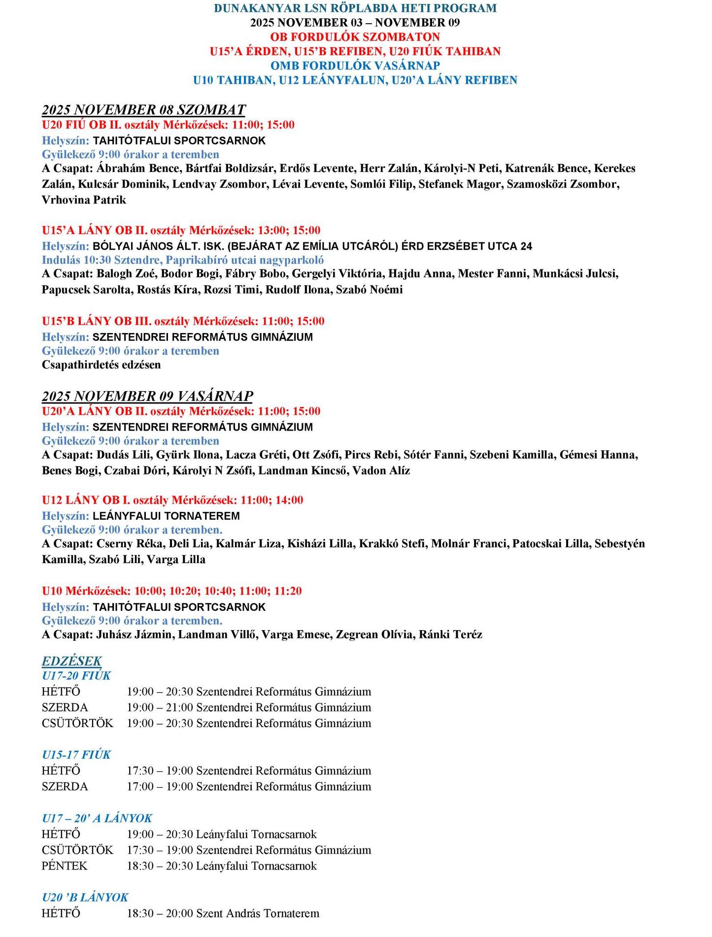 A szünetet követően visszatérünk a régi kerékvágásba, mely során számos programon vesznek részt ezen a héten is játékosaink. Érden, Tahiban, Szentendrén és Leányfalun fogunk pályára lépni, pontos részletek az alábbi táblázatban:
