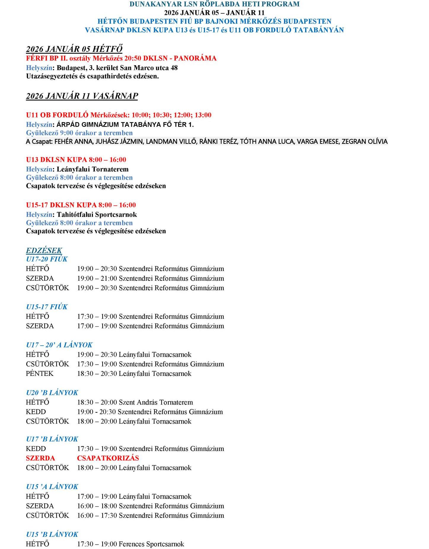 A 2026-os esztendőt hétfőn máris férfi Budapest II. osztályú mérkőzéssel indítjuk Óbudán, majd a heti edzéseket és egy közös korcsolyázást követően vasárnap folytatódnak a programok: U11-es csapatunk Tatabányán lép pályára, míg U13-15-17-es korosztályaink DKLSN Kupán vesznek részt.