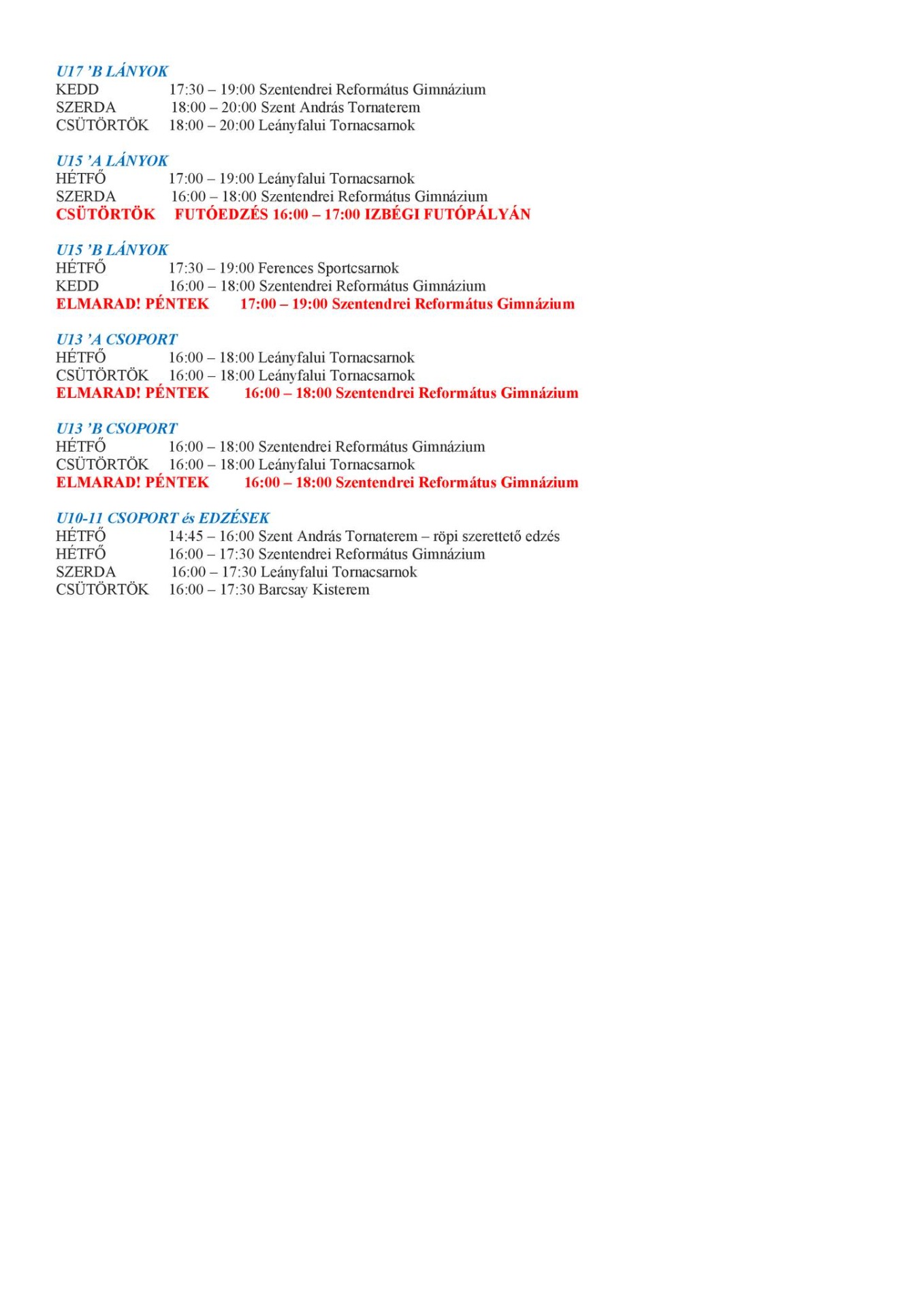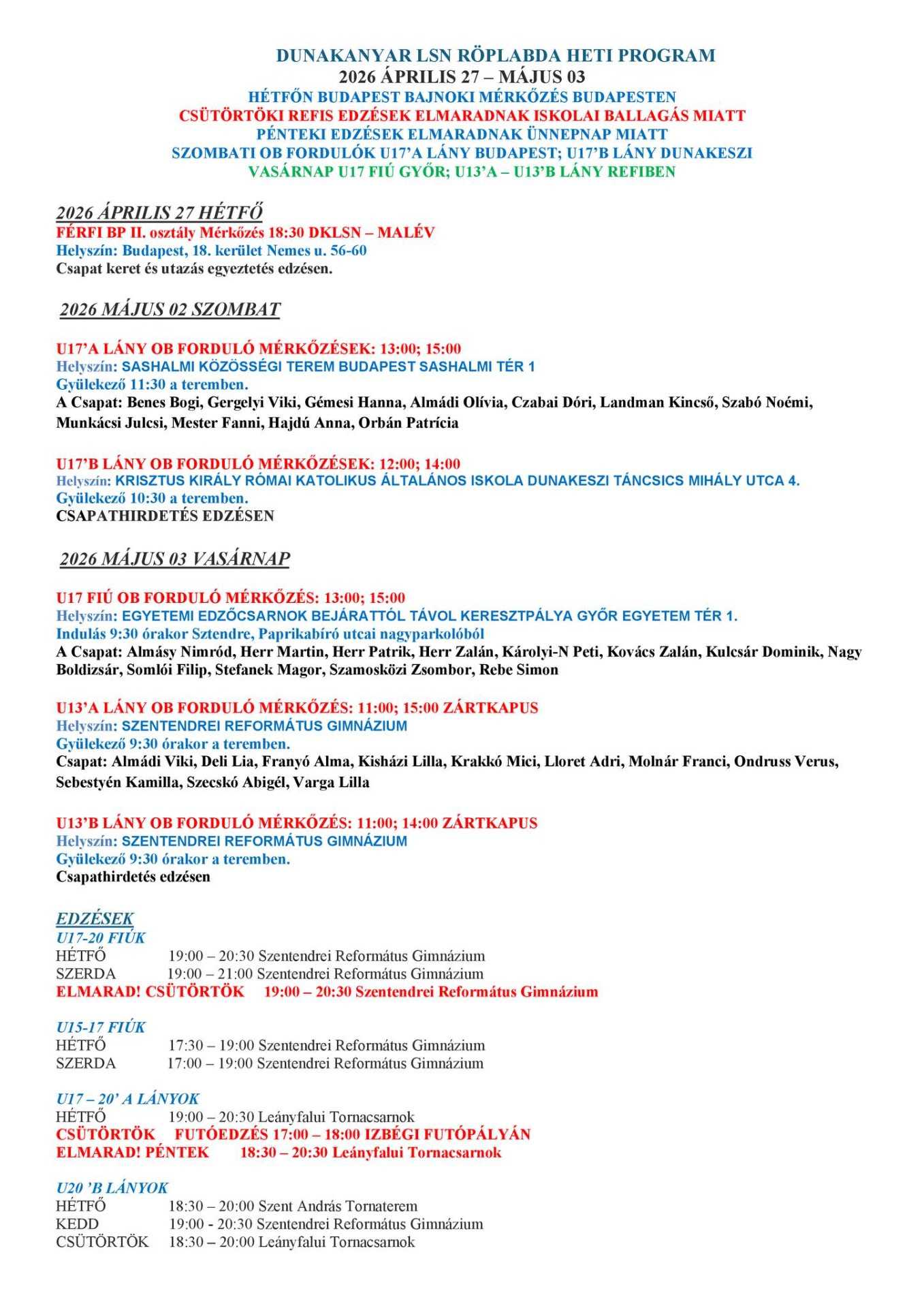 Lássuk, milyen események várnak ránk a heti edzések mellett: hétfőn bajnoki mérkőzés lesz Budapesten, szombaton és vasárnap pedig U17-es és U13-as leányaink, valamint az U17-es fiúk fognak szerepelni. Figyelem: a csütörtöki edzések ballagás, a pénteki tréningek pedig ünnepnap miatt maradnak el! Részletek az összefoglalóban: