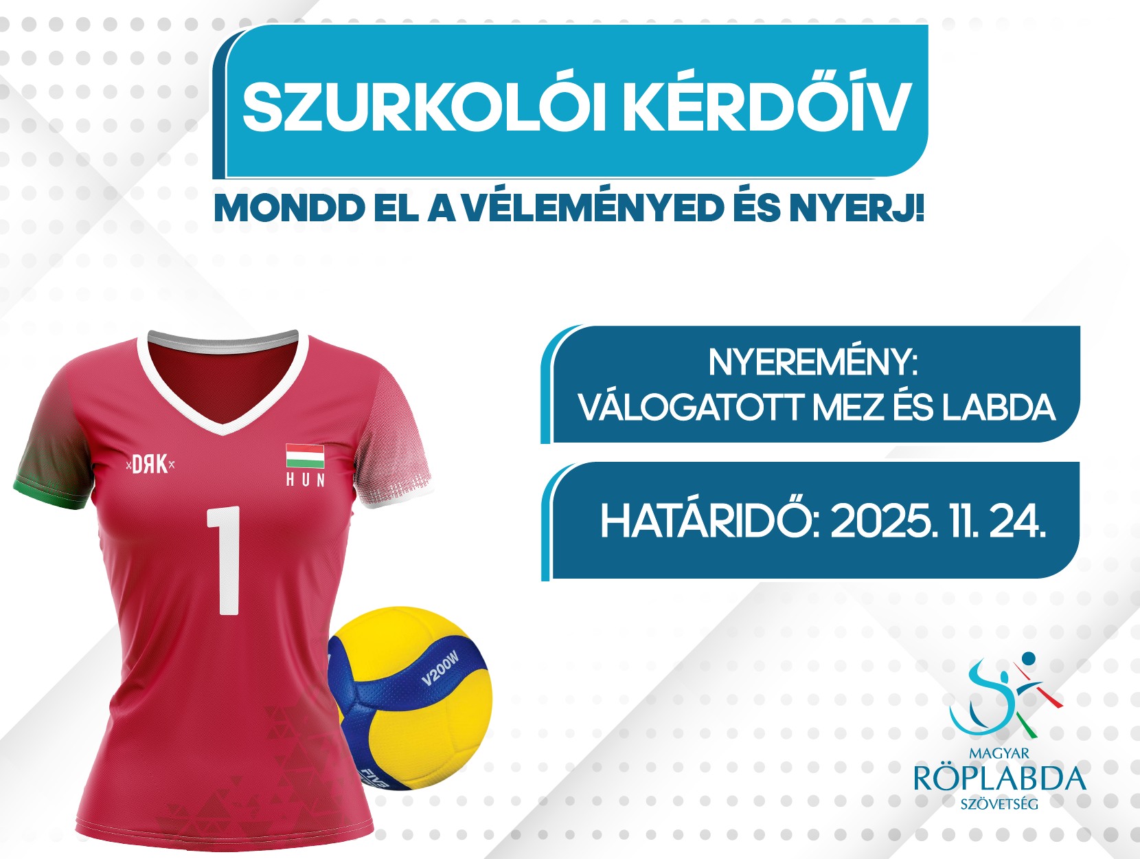 Szeretnénk még jobban megismerni benneteket — a magyar röplabda elkötelezett szurkolóit! Segítsetek nekünk abban, hogy a jövőben még színvonalasabb szurkolói élményt nyújthassunk, és még közelebb kerülhessünk hozzátok! Töltsétek ki szurkolói kérdőívünket, és csatlakozzatok a nyereményjátékhoz, ahol 10 db hivatalos röplabdát és 10 db mezt sorsolunk ki a kitöltők között!